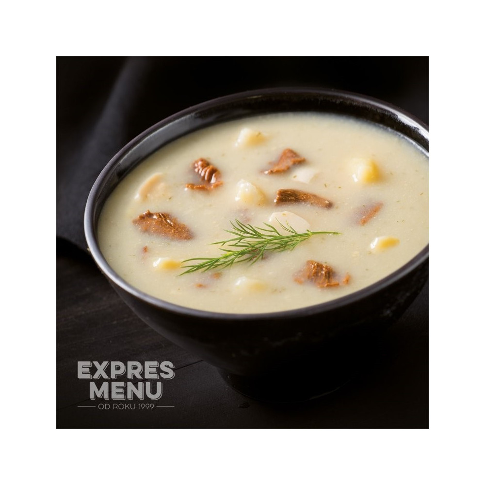 - voda, brambory, smetana, vejce, houby lišky obecné (3 %), cukr, ocet, rýžová mouka, kukuřičná mouka, kopr sterilovaný (voda, kopr, ocet kvasný, cukr, sůl), sůl kamenná, pepř.