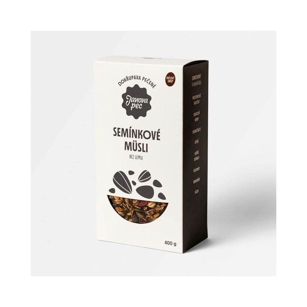 je vyrobené z přirozeně bezlepkových potravin. Má v sobě energii semínek, ze kterých roste nový život. To je müsli z Janovy pece, které Vám zpříjemní chvíle při snídani nebo svačině.