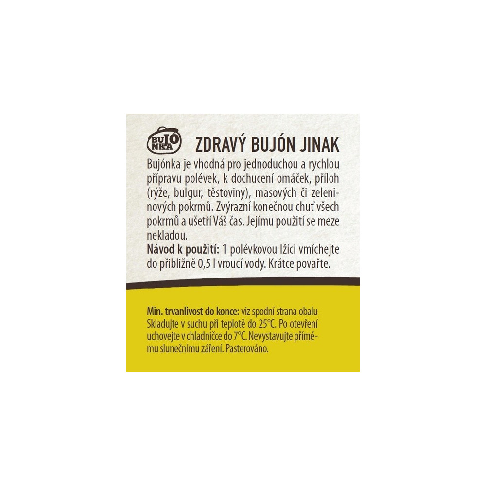 je zdravý bezlepkový bujón s příchutí česneku a dýně vhodný pro jednoduchou a rychlou přípravu polévek, k dochucení omáček, příloh (rýže, bulgur, těstoviny), masových či zeleninových pokrmů. Zvýrazní konečnou chuť všech pokrmů a ušetří Váš čas. Jejímu použití se meze nekladou.