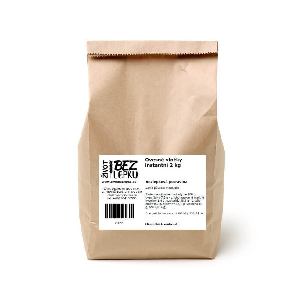 Bezlepkové ovesné vločky instantní pro rychlou přípravu.