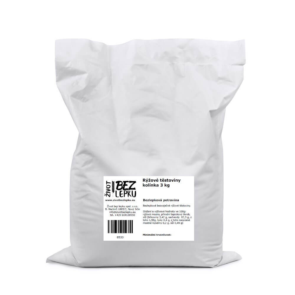 Bezlepkové bezvaječné ryžové cestoviny v tvare kolienok.