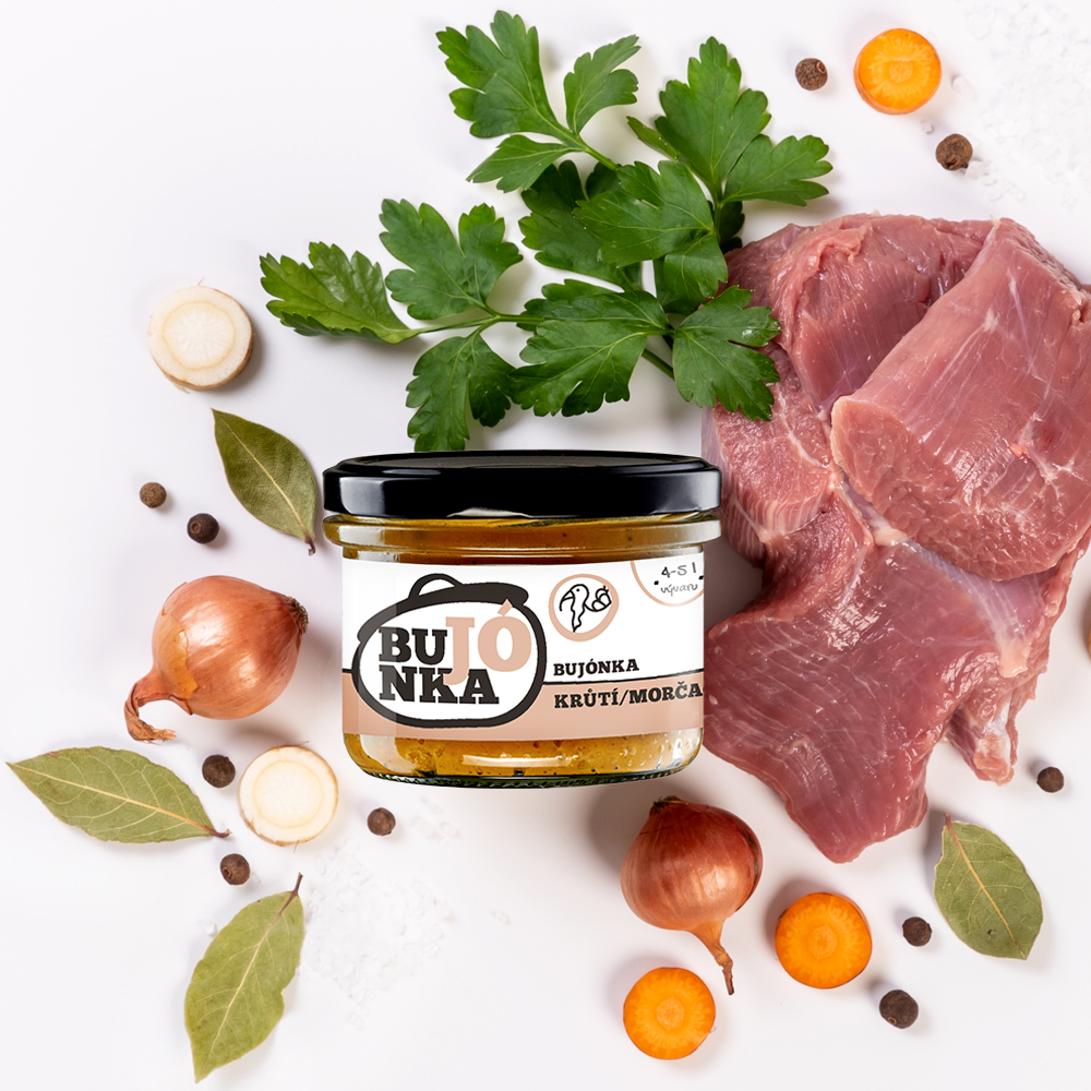 - zelenina 52% (cuketa, petržlen, zeler, mrkva, paradajka, cibuľa, petržlenová vňať, cesnak), morčacie mäso 38%, hrubozrnná morská soľ 10%, bobkový list.